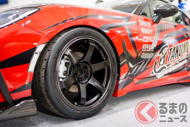 オリジナルパーツの中でも一番の人気アイテムと言えるのが、ホイールメーカーのRAYSとコラボし生まれた、通常のラインナップには存在しないサイズやフェースを持った鍛造ホイールでしょう。現在はVOLK RACINGの「ZE40」「TE37 SAGA S-plus」「CE28N-plus」がラインナップされており、どれも足回りをバチっと決めた状態で装着するとツライチになる、いわゆる“チューナーサイズ”です。