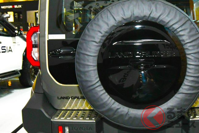 煌びやかなスーパーカーやチューニングカーがひしめく会場内には、まだ発売されていないトヨタ新型「ランドクルーザーFJ(以下、ランクルFJ)」のカスタム仕様車が早くも初公開され、注目を集めていました。