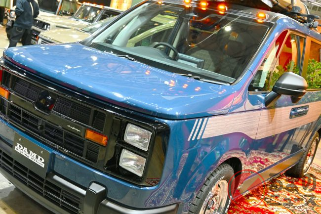 ホンダ「ステップワゴン」や三菱「デリカミニ」など、往年の名車を彷彿とさせるレトロでアメリカンな新作カスタムカーを多数展示しました。
