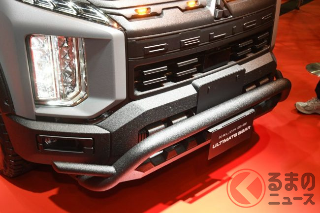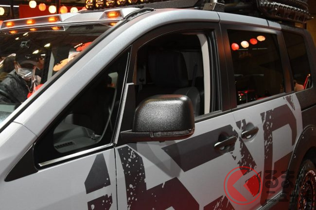「ちょうど今日(東京オートサロン2026が開幕した2026年1月9日)、マイナーチェンジしたデリカD:5が発売になったんです。今回のマイナーチェンジでは、よりラギッドなデザインになって、ギア感が戻っています。その新しいデリカD:5のイメージをより延長したものがアルティメットギアとなります」というのは、三菱自動車ブースにて説明を行っていたデザインの担当者です。