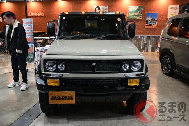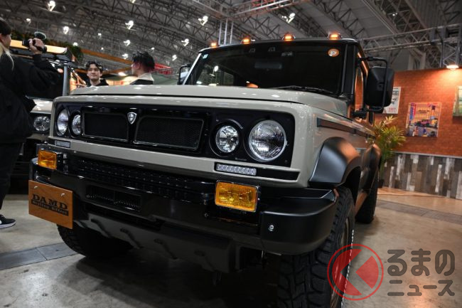カクカクデザインの“新”「ちいさな“四駆”SUV」公開! 丸目4灯の「旧車デザイン」採用した「本格モデル」! スズキ「ジムニーノマド」のDAMD ARMATAとは