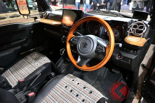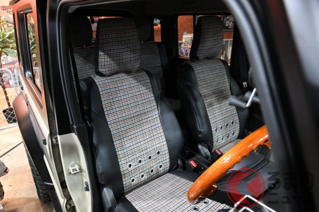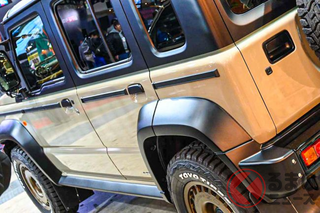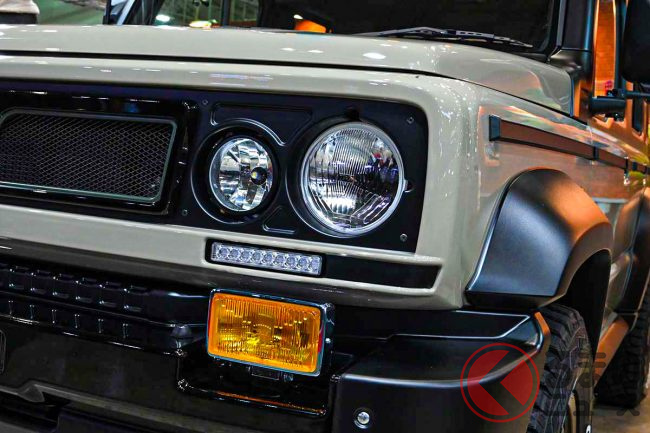 東京オートサロン2026で展示された個体はボディをジープ「ラングラー」の純正色に、ピラーとルーフ部分をマットブラックに塗装したことで、クラシカルに仕上げています。
