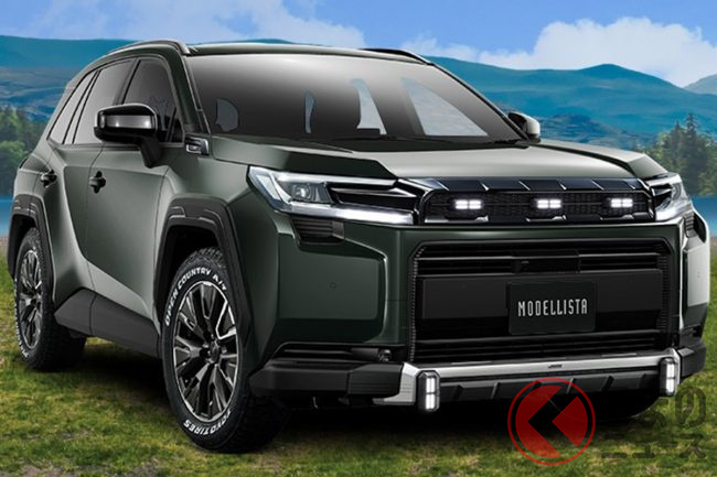 トヨタ「“新型”RAV4 エアロ仕様」に注目! 斬新「ピカッと光るグリル&アゴ」が超カッコイイ! 73万円でド迫力にイメチェンする「モデリスタ for Adventure」の魅力とは