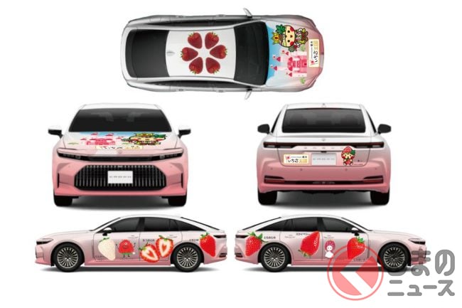 トヨタ「“新型”ピンククラウン」初公開に反響殺到! 「まさかの復活!」「やっぱりカワイイ~」と好評に! 栃木の「いちごクラウン」6年ぶりに全面刷新! さらに一般向け“注文販売”実現も!?