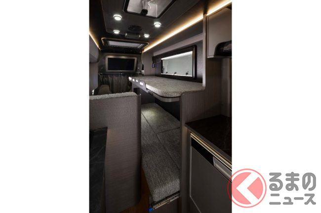 そのほか、シンクや取り外し可能なバーナー、折り畳み式の2段ベッドなども備わっており、移動先でも快適な居住空間を確保できるよう配慮されています。