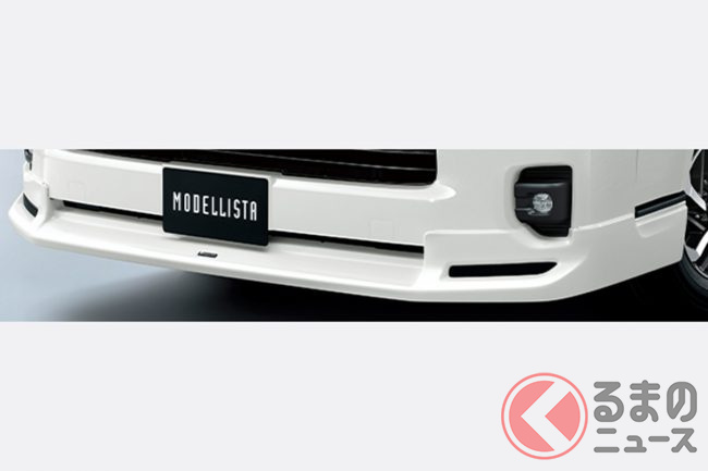 たった「5万円以下」で買える! トヨタ「“新”ハイエース エアロ仕様」に注目! “スポーティなダクト”&“上品出っ歯”でロー&ワイドな雰囲気に! モデリスタの「フロントスポイラー」の魅力とは!