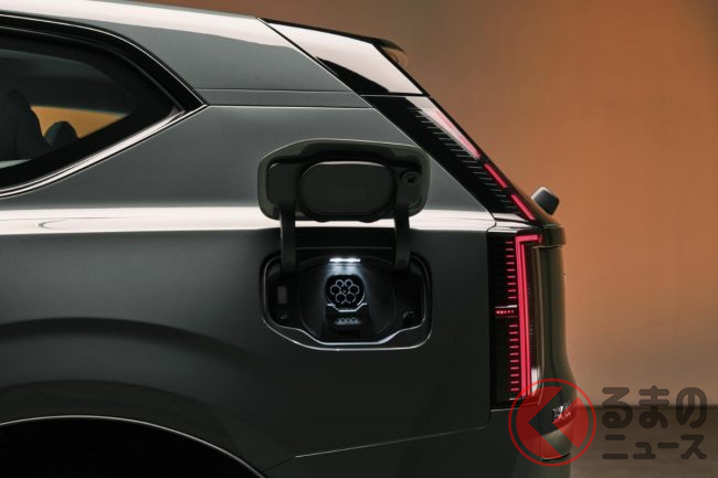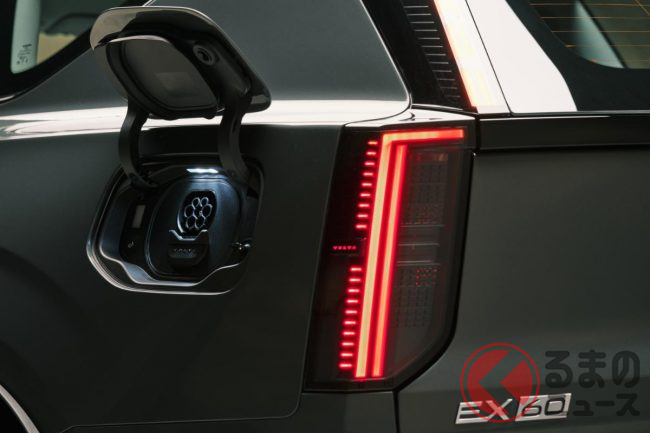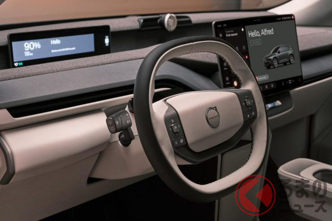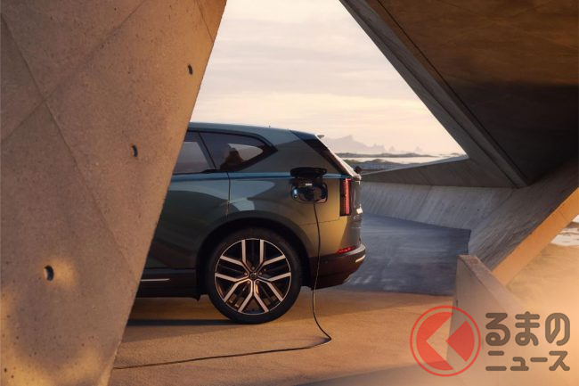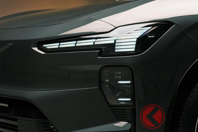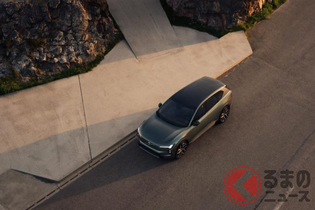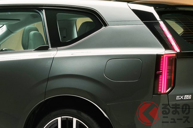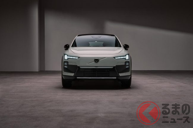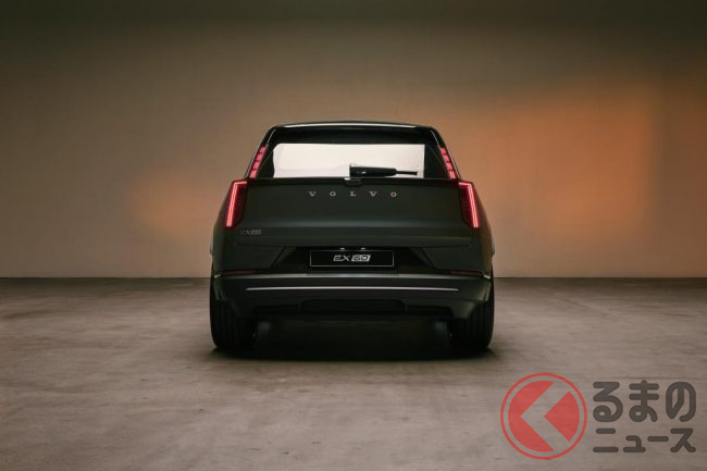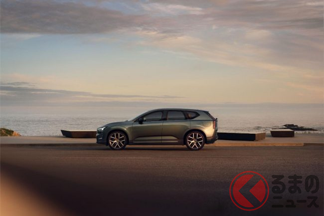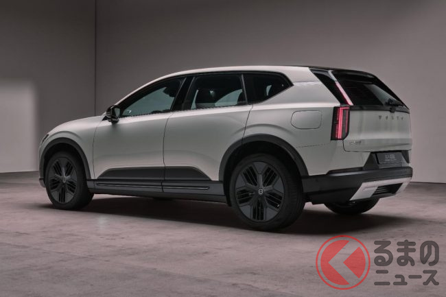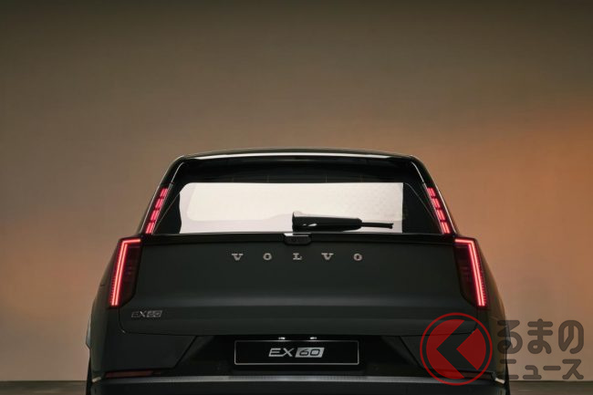 新型「“5人乗り”SUV」世界初公開! スポーティな「680馬力」仕様&全長4.8mのツルツルボディ採用! 斬新「“光る”ウイングドアノブ」がカッコいいボルボ「EX60」スウェーデンで登場