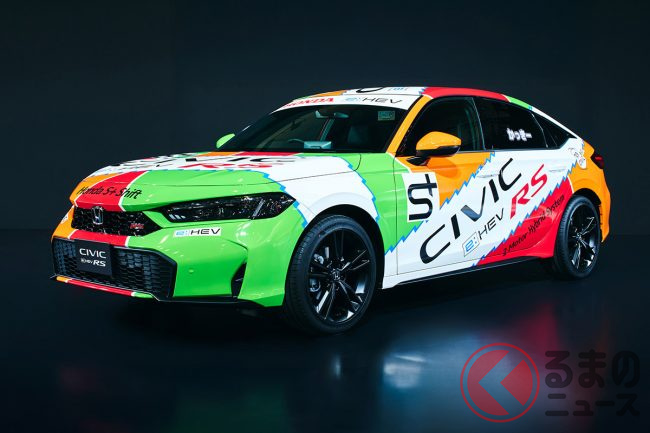 ホンダ「“新”シビック」公開! スゴい「“プレリュード”シフト」搭載! 専用チューニング採用!? &めちゃ懐かしい“レーシングカラー”もいい「e:HEV RS プロトタイプ」登場