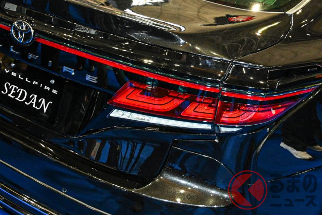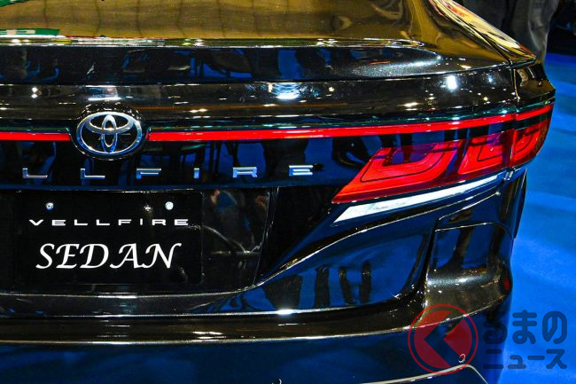今回展示された「ヴェルファイア セダン」は、その名のとおり、トヨタの高級ミニバンである「ヴェルファイア」のフロントマスクをもったセダンです。