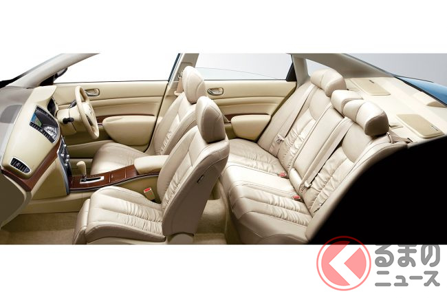 全長5メートル弱のFFラージセダンだけに、後席の足元エリアは圧巻の広さであり、フロントシートまで約300mmものクリアランスが確保されています。静粛性向上のため、すべてのドアに2重構造の静音ガラスを採用している点も特徴です。