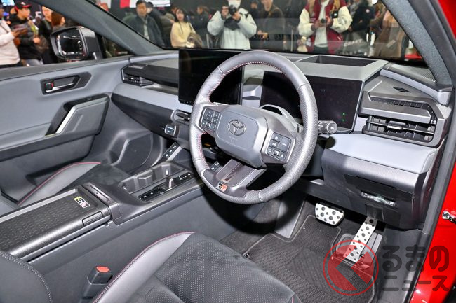 同社では、新型RAV4を生産することが決まっており、2026年3月までの発売が予告されているPHEV(プラグインハイブリッド車)専用のオンロードスポーツ「GRスポーツ」のプロトタイプが展示されていました。
