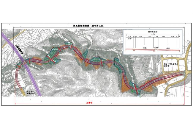 2013年度にまとめられた計画に基づいて、約12年かけて完成した西風新都環状線は、西風新都中央線と県道290号線、県道71号線などと接続しています。