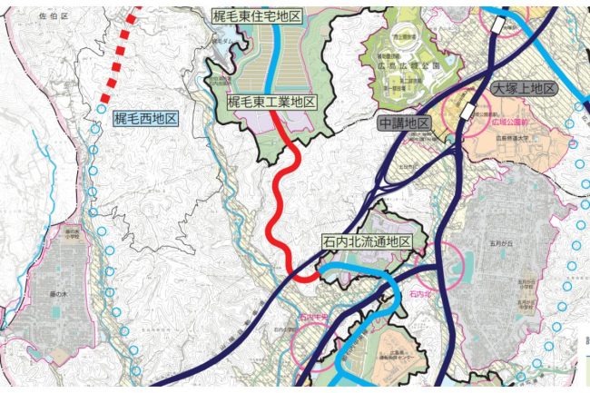 そうした交通ネットワークの問題点を解決するべく、2013年6月に策定された「活力創造都市“ひろしま西風新都”推進計画2013」において優先整備区画に指定されたのが西風新都環状線です。