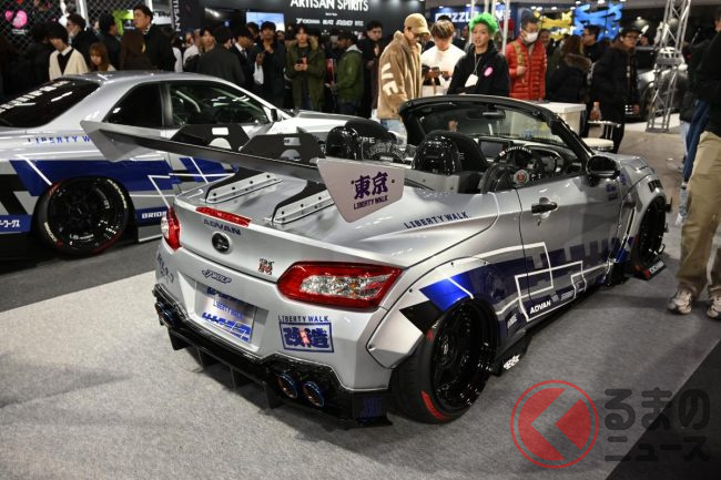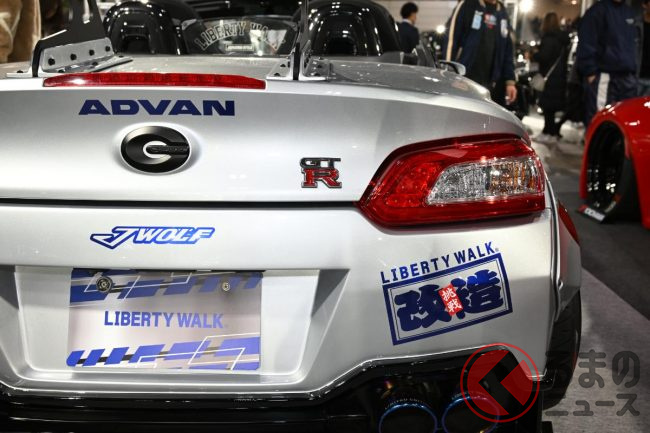 リバティーウォークは、東京オートサロン2026において「lb★nation ダイハツ コペン GT-K タイプ2」を出展しました。日産「GT-R」のようなルックスが特徴のこのカスタムカーは、いったいどのようなモデルなのでしょうか。