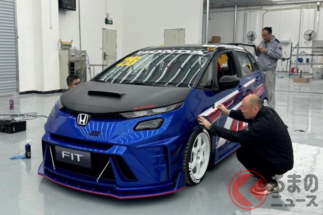 このモデルは、これまでの「親しみやすい実用車」というフィットの立ち位置を大きく飛び越えるもので、視覚的にはまるでレース専用車のような迫力を放っています。