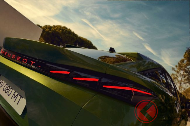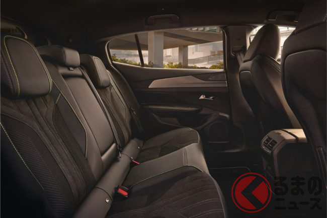 最大の注目ポイントはリアデザインです。新型408では、車名である「PEUGEOT」のレタリング自体が赤く発光するイルミネーションを採用。これはプジョーとして初の試みで、夜間には強烈な存在感を放ちます。