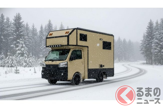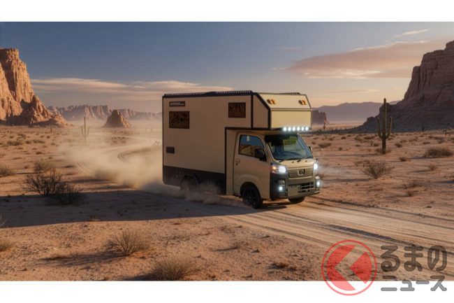 ベース車両にはダイハツの軽トラック「ハイゼットトラック」を採用し、日本の狭い道路事情や駐車場でもストレスなく扱えるコンパクトさを維持しながら、本格的な車中泊の旅を楽しめるパッケージングを実現しています。