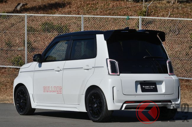 ホンダ「4人乗り“コンパクト”スポーツカー」発売へ! 「シティターボII復活!?」な超レトロ「赤文字デカール」にオジサン歓喜!? “軽サイズ”の新型「Super-One」“純オプ”仕様に注目