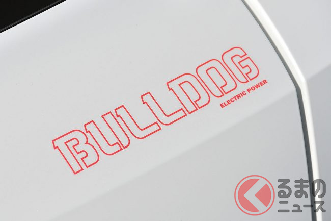 サイドデカールは、ボディ色抜きの赤輪郭の書体で「BULLDOG ELECTRIC POWER」と記されているものです。