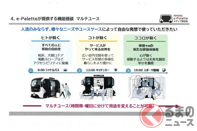 トヨタの次世代モビリティ「e-Palette」ってこんな使い方もできるの!? 移動の概念を変える「マルチユース」の全貌とは? 広がる”可能性”に期待大!