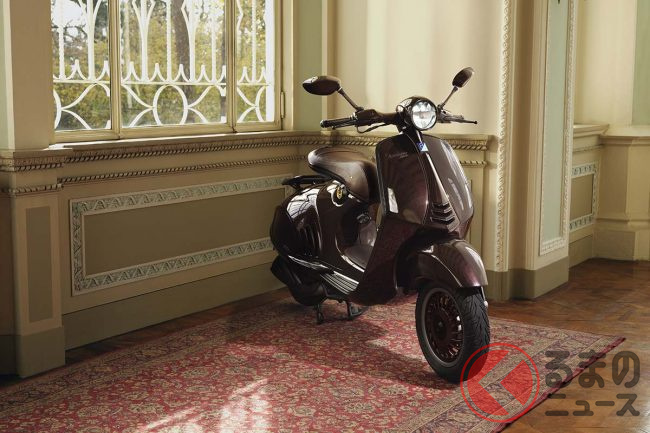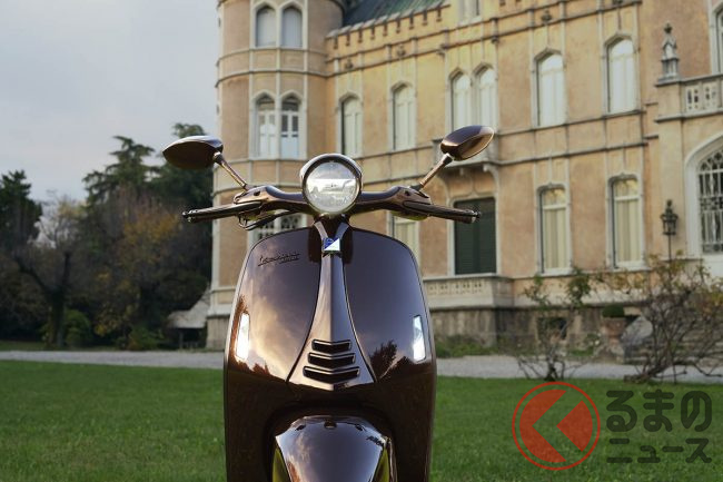 価格220万円! ベスパ「26年の“新”干支スクーター」発表 栗毛カラー×鞍風の革シートシートで“馬”の優雅さを表現! 特別限定車「946 Horse」受注開始