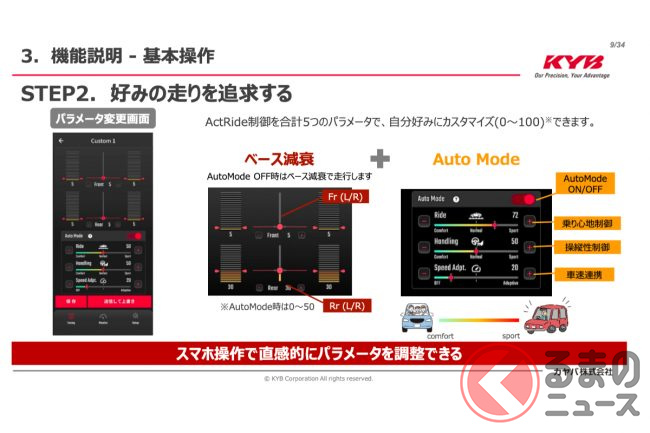 2026年1月29日、カヤバは、スマートフォン(スマホ)で減衰力を自在にコントロールできる次世代サスペンションシステム「ActRide(アクトライド)」を発表しました。