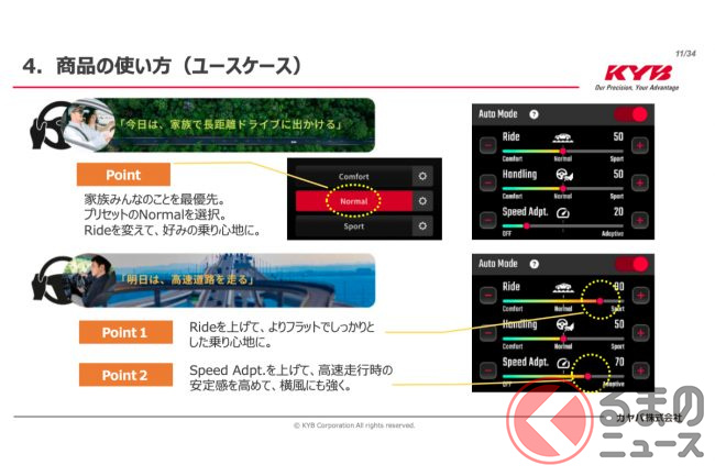 オートモーティブコンポーネンツ事業本部 技術統括部 開発センター製品開発室 室長の宮谷修氏は「まるでスマホで音楽を選ぶように乗り心地を選ぶことができます」と、語っています。