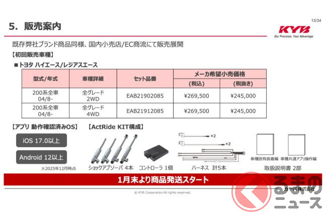 第一弾は「ハイエース」用から! スマホで「足回り」を操る時代へ! カヤバが革新的な電子制御サスペンションシステム「ActRide」発表!