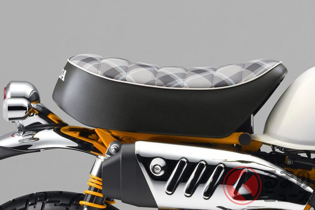 また、これら全3色に共通して、シート表皮にはお洒落なチェック柄が採用されました。これにより、モンキーが持つ伝統的な可愛らしさと遊び心がより一層引き立てられています。