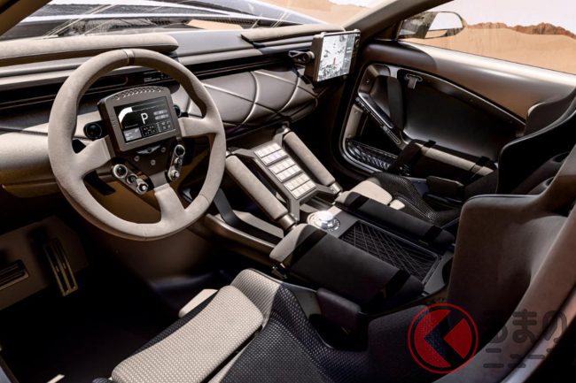 インテリア素材は質感の高いスエードとレザーを組み合わせています。一体型ロールケージ、4点式ハーネスシステムを装備し、オフロード走行での安全性を高めました。