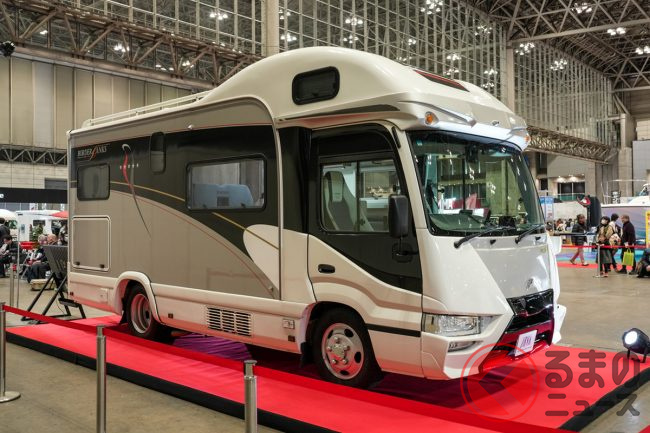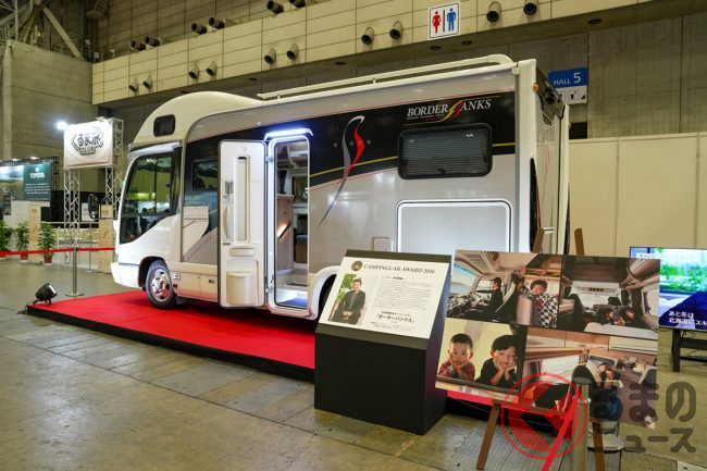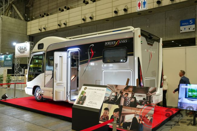 中村獅童さんの愛車であるナッツRV「ボーダーバンクス」の実車は、幕張メッセのホール5で展示されています。