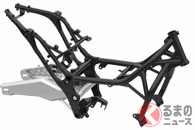車体には、スチールのしなやかな特性を活かしたダイヤモンドフレームを採用し、安心感と軽快感を両立。スイングアームは軽量な一体型アルミ高圧鋳造製とすることで高い路面追従性を追求しています。サスペンションは、フロントにショーワ(Astemo)製倒立式フロントフォーク、リアにはプロリンクを介したモノサスペンションを装備し、前後ともにプリロード調整機構を備えています。