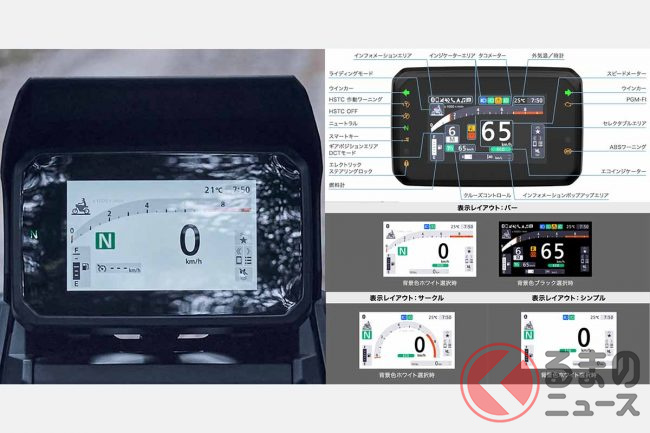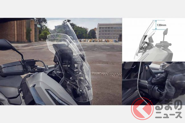 快適性と利便性を高める装備も充実しています。片手で5段階に高さを調節できるウインドスクリーンや、豊富な情報を見やすく表示する5.0インチTFTフルカラー液晶メーターを搭載。スマートフォンと連携する「Honda RoadSync」により、ハンドルスイッチや音声でアプリの操作が可能です。