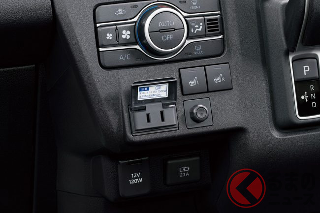 さらに、ビジネスの可能性を広げる給電機能の充実ぶりも見逃せません。車内に設置されたコンセントからは最大1500Wの電力を取り出すことができ、走行中であっても電動工具の充電や使用が可能です。これにより現場での待ち時間を大幅に短縮でき、作業効率が向上します。
