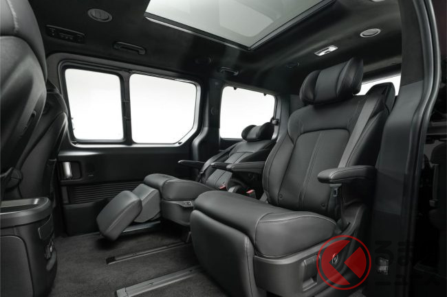 ボディサイズは全長5255mm×全幅1995mm×全高1990mm、ホイールベース3275mm。トヨタ「アルファード」よりひとまわり大きいサイズ感です。