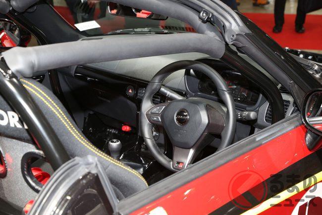 そして気になるのがルーフです。JMSの際には現行の「コペン」と同じ電動ハードトップとなっていましたが、今回はフルオープンとなっていました。