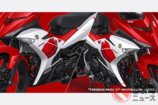 価格26万円! ヤマハ「“新”小排気量バックボーンスポーツ」登場! スクーター風の外観×マニュアルミッションの個性派モデル! 「MX King 150 70th LIVERY」インドネシアで発表