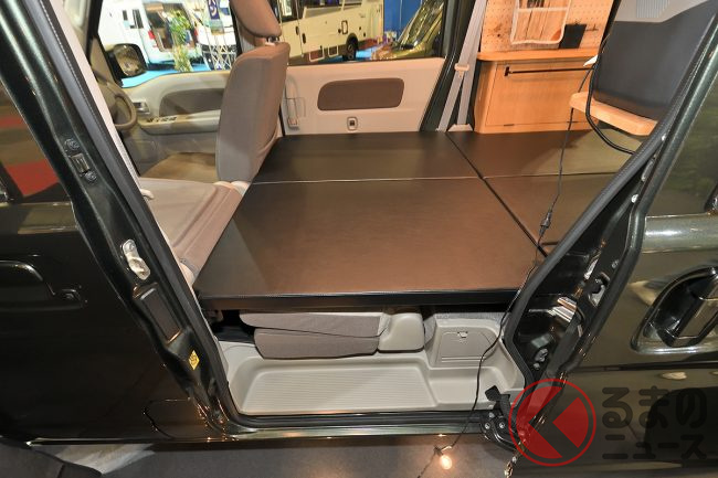 レイアウトで特筆すべきは、後部座席を撤去せずに残している点です。これにより、普段は4人乗りの軽自動車として買い物や送迎に使い、休日はキャンピングカーとして使うという「二刀流」の運用が可能です。