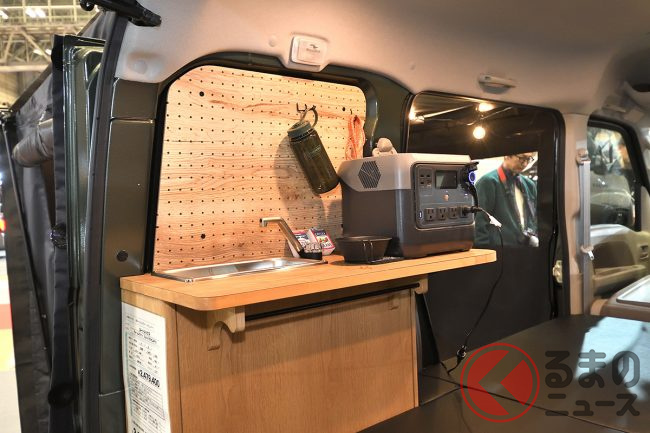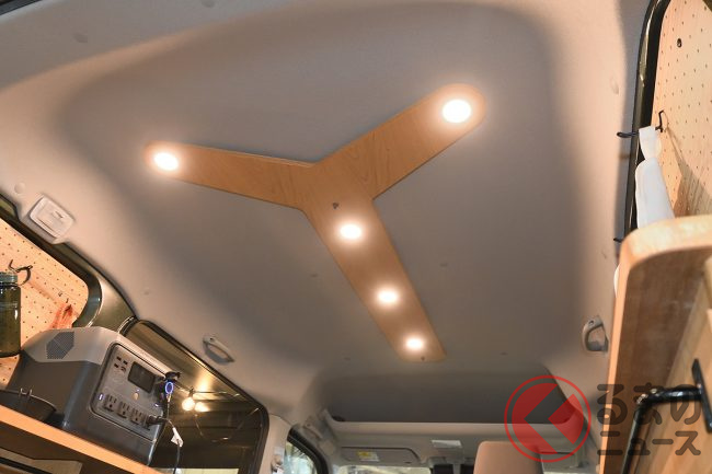 電気を使いたい場合はユーザーが持ち込んだポータブル電源を活用する前提で、車内には接続用の12Vプラグなどを備えた割り切った設計としています。