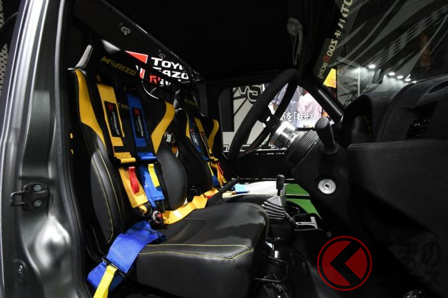 佐々木選手いわく、『町工場』であるGRガレージの現場スタッフとともに『自分たちが乗りたいクルマ』を目指してGRハイゼット モリゾウ Kトレイルを製作したそうです。