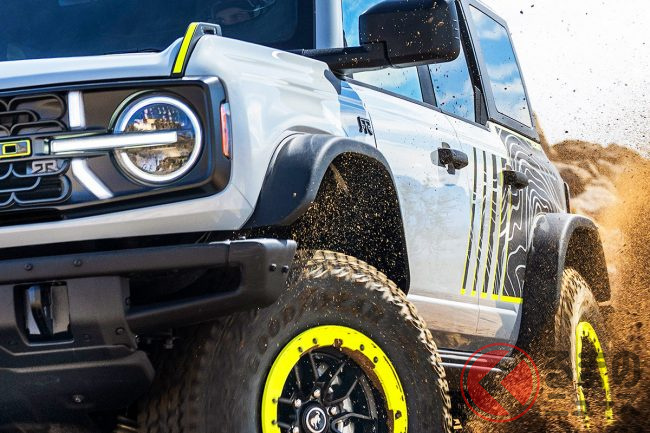 2.3リッターで「300馬力」! 最新型「カクカク“本格四駆”」に反響殺到! レトロ顔&走りの「専用サス」採用に「日本でも売って」の声も! “専用外装”もイイ「フォード ブロンコ RTR」米国モデルが話題に