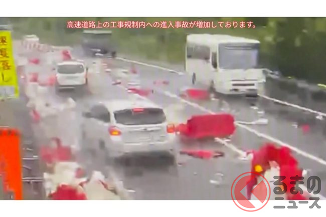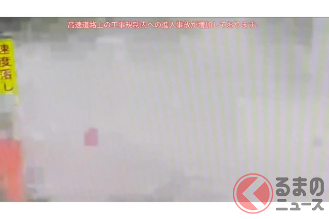 動画とともにNEXCO西日本 金沢支社は、「高速道路のリニューアル工事が進捗する一方で、工事規制内への進入事故が増加しています。