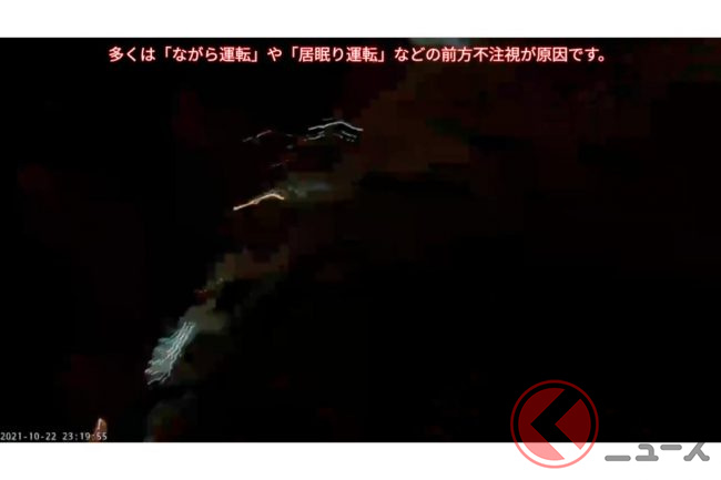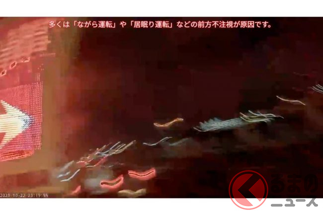 動画は7本の映像で構成された「事故のまとめ動画」となっています。このうち、5本目の動画は、夜の高速道路本線を映したものです。