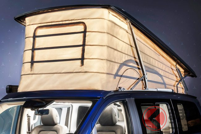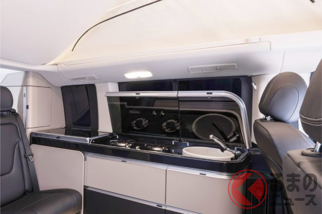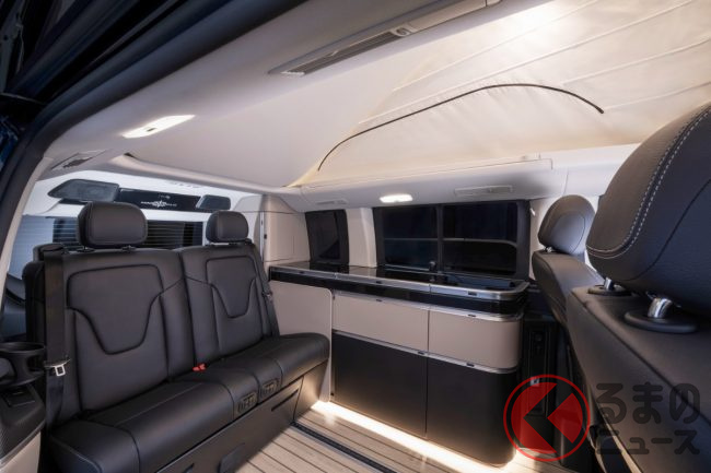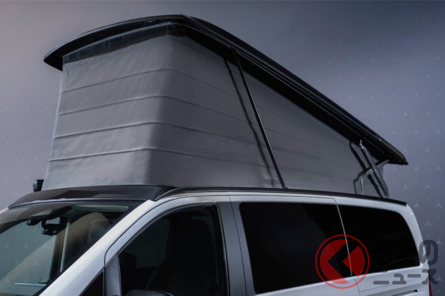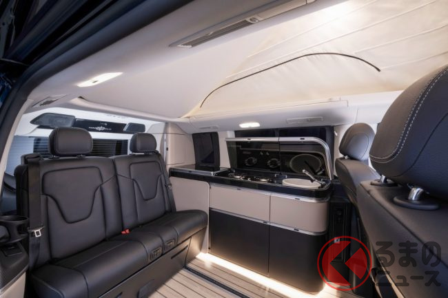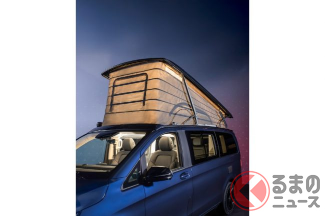 新型「高級ミニバン“車中泊仕様”」初公開! “超豪華”「広々内装」&パカッと開くルーフ採用! 冷蔵庫&キッチンも装備の走る“高級ホテル”なメルセデス・ベンツ「マルコポーロ」独国で登場