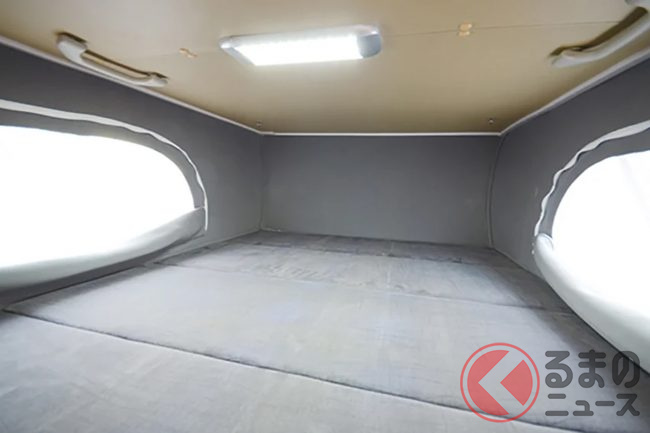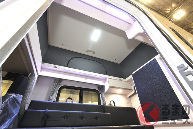 ルーフ内の就寝スペース(通常走行時はベッドマットを運転席上に収納可能)と合わせ、乗車定員4名・就寝定員大人2名+子ども2名を実現したといいます。
