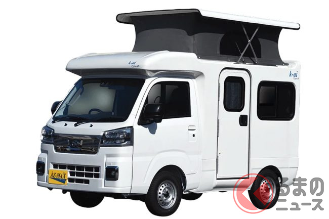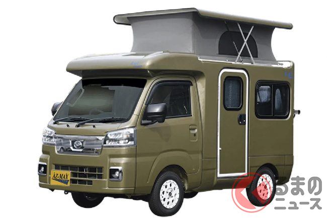 ダイハツ「“4人乗り”軽トラ!?」がスゴい! 全長3.4m級「軽ボディ」が“伸び縮み”で「家族4人」寝られる「車中泊」仕様に!? AZ-MAX「ハイゼットカーゴ」軽キャンパー「K-ai タイプD」とは