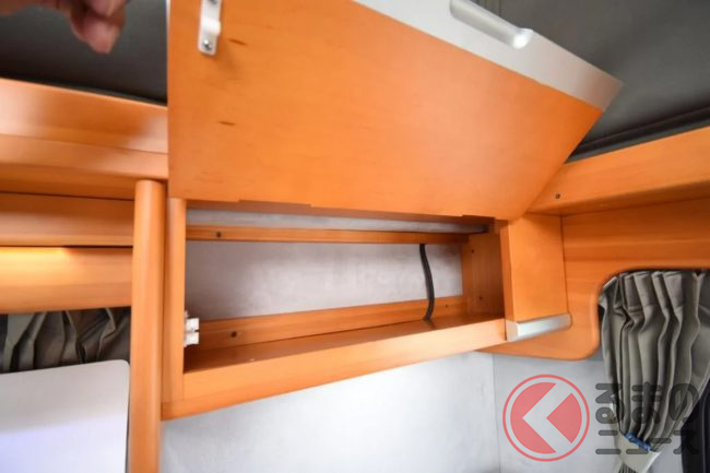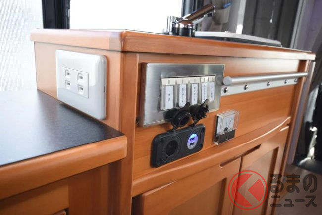 その他装備としては、それぞれ10リッターの容積を持つ給水タンクと排水タンクや105Aのサブバッテリー・走行充電システムを標準で、FFヒーター・1500Wインバーターなどをオプションで付けることができます。