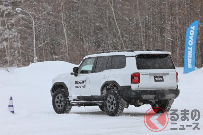 ブレーキも同じ路面とは思えないほどの制動力でスノー路面における「走る」「止まる」はこの日試した中で間違いなく最強でした。あと体感した性能とは異なりますが、ブロックパターンのデザインはランドクルーザー250にバッチリ似合っています。「デザインでスタッドレスタイヤを選ぶ日がくるとは…」と新しいトレンドを予感させられました。