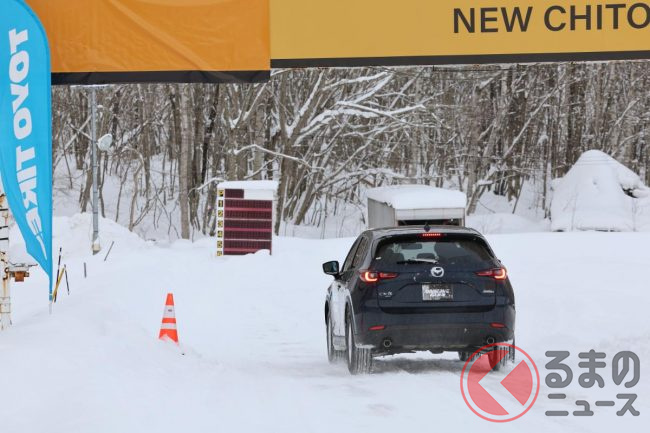 今回は北海道にある新千歳モーターランドにて試乗しました。GIZ3とGSi-6はマツダ「CX-5」に、W/T-Rはトヨタ「ランドクルーザー250」に装着し、アイス路面と深雪のスノー路面の両方ですべての銘柄を試してみました。