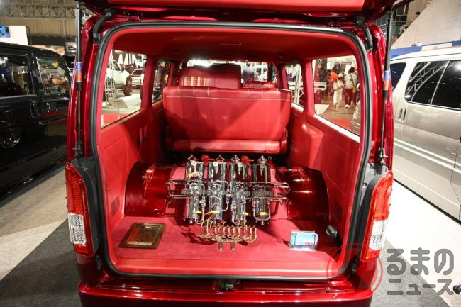 トヨタ「“V8”ハイエース」!? パワフルな「“5.7リッター”エンジン」&旧車デザイン内装採用! トリニティが手掛け“3000万円”注ぎ込まれた「商用バン」とは
